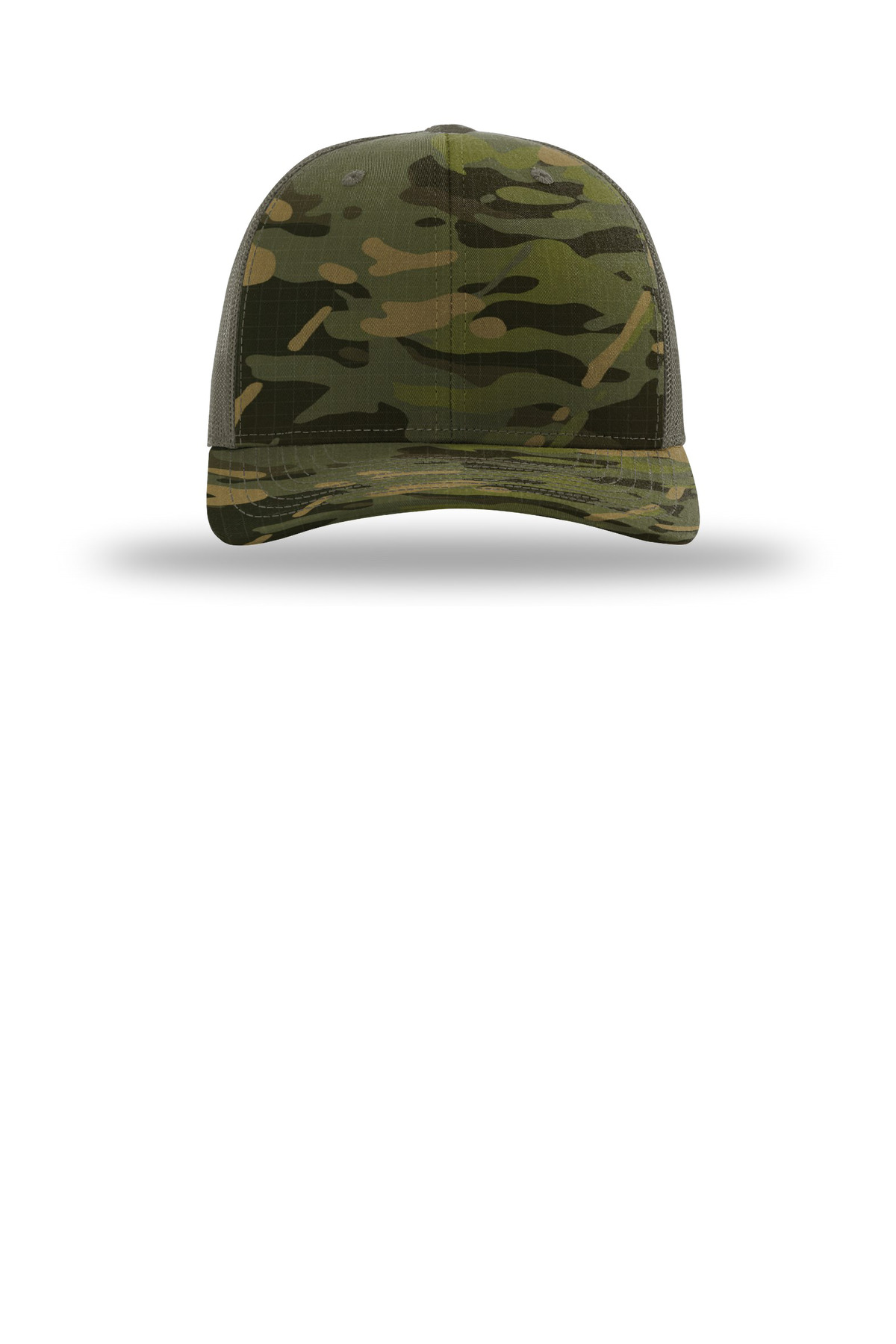 Richardson Printed Tactical Trucker 112PTA tactical take on the classic 112 trucker, this cap is available in MultiCam prints. It is constructed from durable NYCO ripstop fabric and includes a no-button crown for extra comfort when wearing ear protection.,50/50 cotton/nylon front with 100% polyester mesh back,Structured,Mid Pro shape,Precurved bill,No-button crown, designed to relieve pressure from ear protection,Adjustable snapback closure,Cotton sweatband